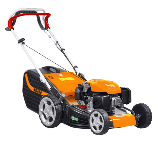 Профессиональный агрессивный стиль. Итальянские дизайнеры создали образ мощной профессиональной техники с динамичными линиями и выразительными формами. Газонокосилка выглядит как техника для серьезных задач.